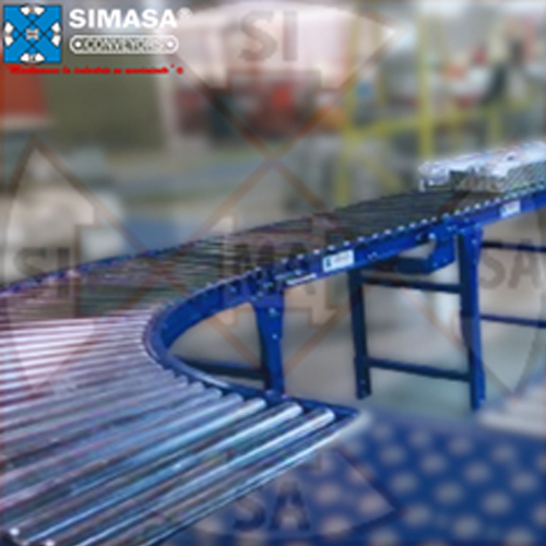 El transportador curvo o curva de rodillos está diseñado específicamente para cambiar la dirección de los productos dentro de un sistema