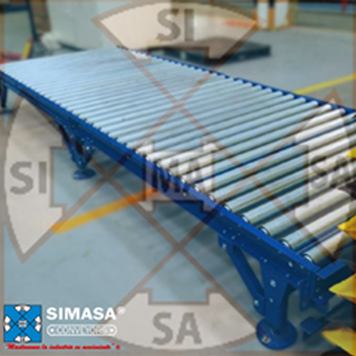 Su funcionamiento se basa en una serie de rodillos metálicos que permiten el desplazamiento suave y eficiente de diferentes tipos de productos a lo largo de la